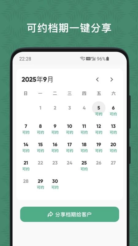 支持用户在线直接把档期分享给客户,让客户能及时了解安排,有助于服务准时开展,防止白跑一趟。