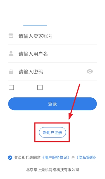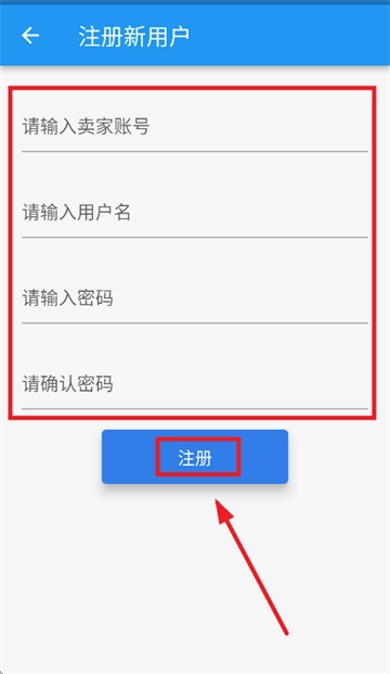 在新用户注册页面,依次填写卖家账号、用户名和密码,最后点击注册按钮就能完成注册操作。