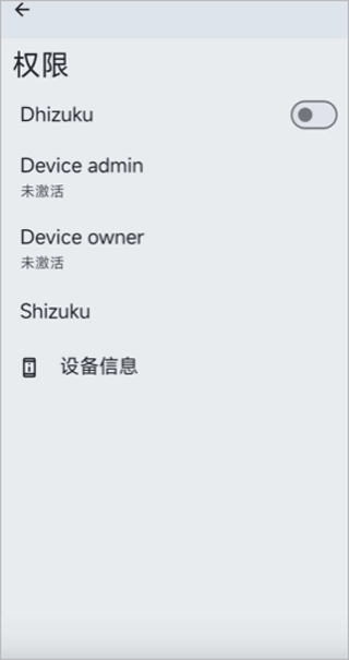 2、接着挑选一种激活方式,未获取root权限的用户可选用Shizuku或Dhizuku来完成激活操作,不过在此建议优先使用Dhizuku进行激活。