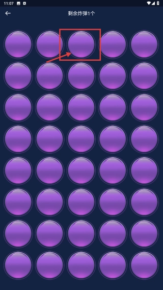 4、在游戏游玩界面,点击紫色圆圈避开炸弹,进行游戏游玩。