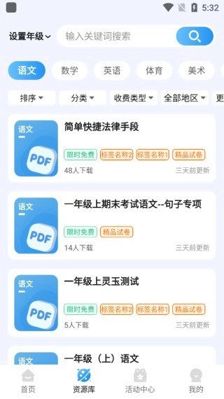 4、资源库内学习资料丰富多样,涵盖多种科目教学资源,全部免费提供。