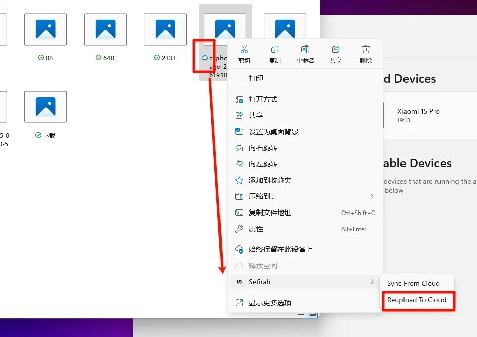 7、软件的挂载方式和WPS文件同步类似,要是出现了对应的图标,建议通过右键手动点击推送,以此保证文件同步能够正常进行。