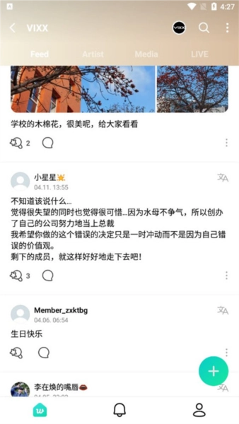 在Weverse平台上发布粉丝专属帖子,把你钟爱的明星那些精致好看的照片分享出来。