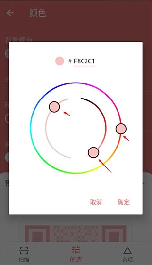 3、点击修改颜色,滑动圆圈内的划片,即可改变二维码的颜色;