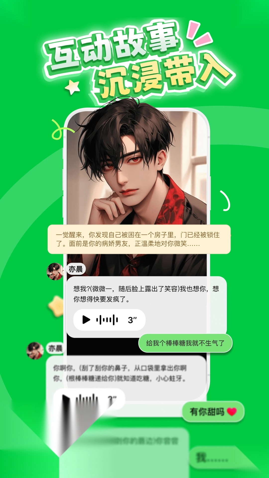 4、充满无限可能的互动体验:依托关键词所触发的专属场景,每一次对话交流都能解锁全新的冒险旅程,令每一次互动都饱含着满满的期待感。
