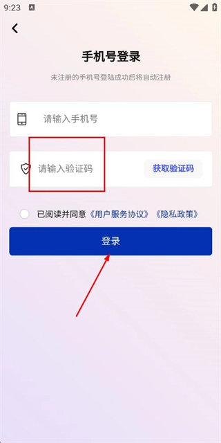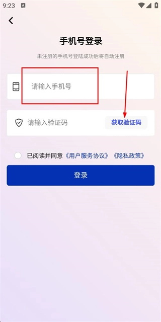 在登录页面输入手机号,勾选相关协议后,点击“获取验证码”按钮。