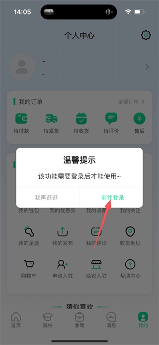 在弹窗中点击前往登录选项,进入登录页面。