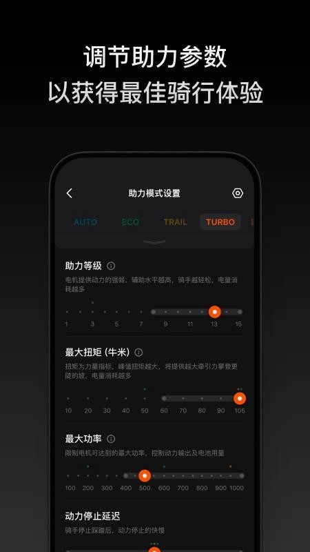 也能对相关的助力参数模式加以设置,自由调节助力参数,畅享优质的骑行体验。