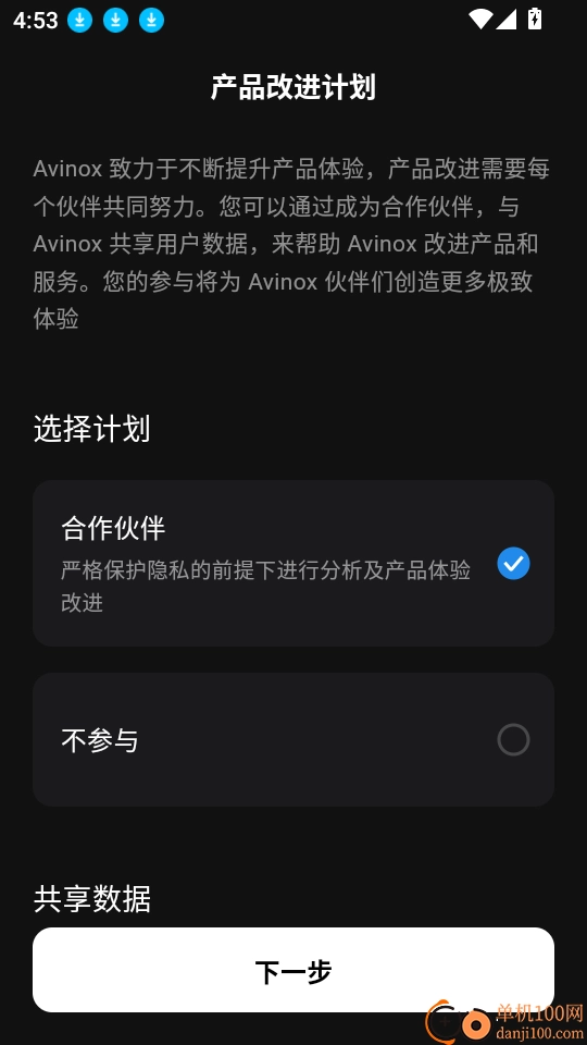 3、接着在产品改进计划里选择参与该计划,点击“下一步”按钮,以此进入软件首页。