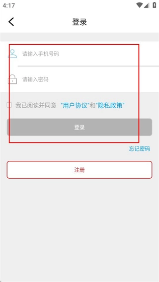 在登录页面输入手机号码和密码,勾选相关协议后点击登录按钮,即可完成登录操作。