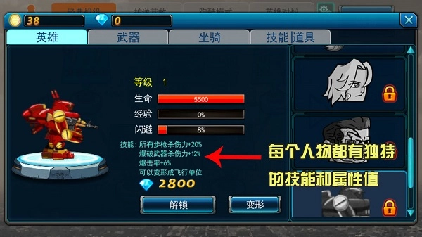 2、机甲变形系统:解锁机甲后,玩家能够切换其专属形态,从而获取飞行、轰炸等强力技能。变形过程中的动态特效可增强战斗的爽快感,助力玩家大幅提升高难关卡的通过率。