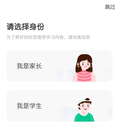大力爱辅导无需注册即可使用作业批改功能,进入后需选择身份与孩子的年级,也可直接跳过,后续再进行补充。