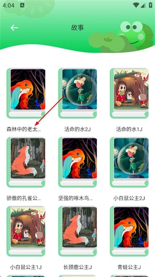 进入故事页面后,挑选你想听的故事卡片,点击这张卡片就能进入对应的音频界面。