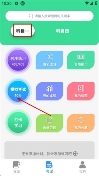 在科目一页面找到模拟考试选项并点击,即可进入科目一模拟考试页面。