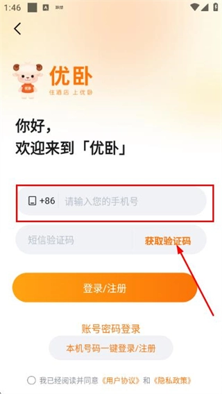 在登录页面输入手机号,勾选相关协议后,点击“获取验证码”按钮。