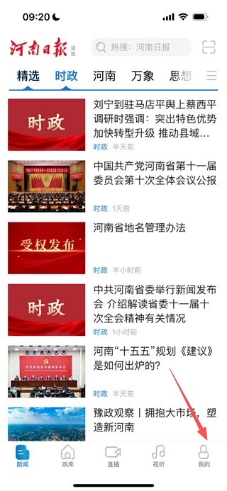 在河南日报的首页,点击底部的“我的”选项,就能进入个人中心页面了。