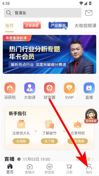 打开破竹知识平台后,找到底部导航栏的“我的”选项并点击,即可进入个人中心页面。