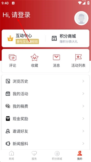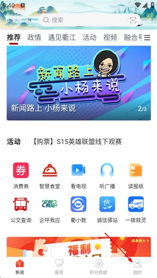 打开e览衢江应用后,找到页面右下角的“我的”按钮并点击,即可进入个人中心页面。