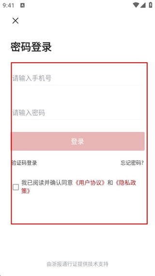 在密码登录界面,填写相关信息并同意协议后,点击登录按钮即可完成账号登录操作。