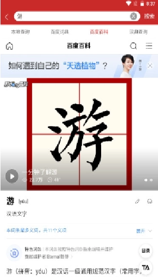 用户在这里能体验到更便捷的汉字查找方式,碰到不认识的汉字时,一键搜索就能完成查询