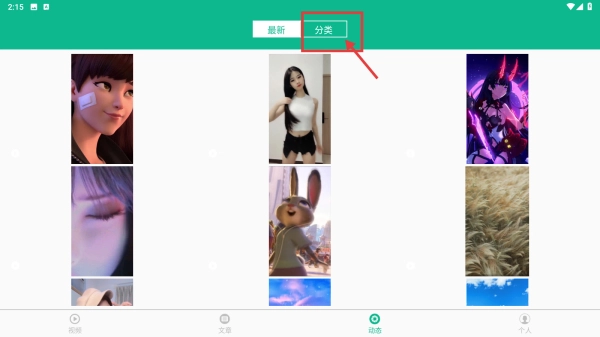 在动态页面,点击分类标签,切换到分类筛选界面。