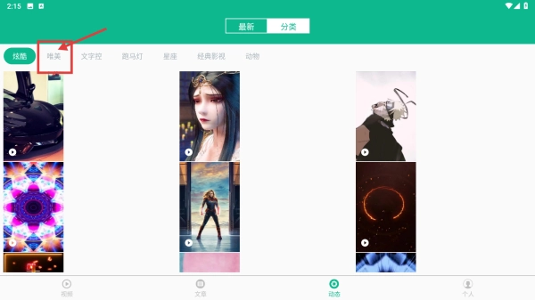在分类筛选页面,点击“唯美”分类标签,即可筛选出唯美类的动态内容。