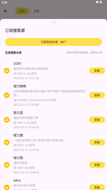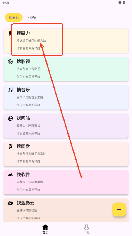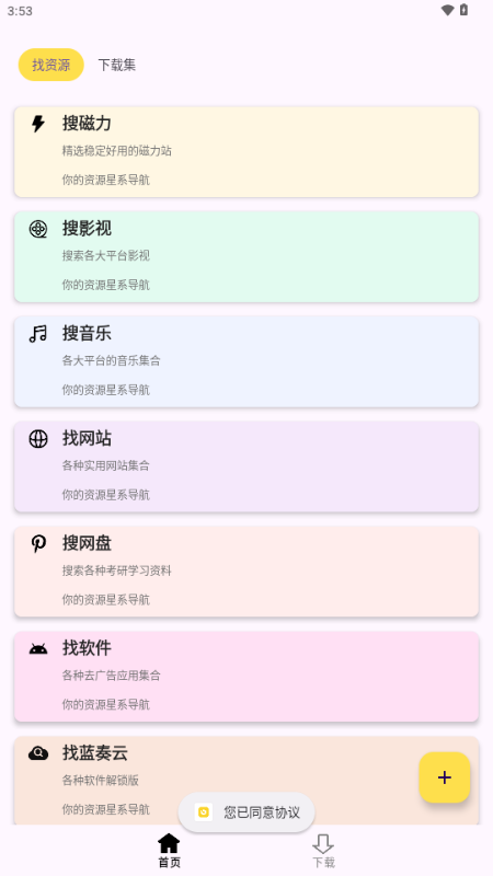 搜藏家是一款被誉为万能资源搜索神器的磁力资源在线搜索工具。你可以通过它获取全网的安装包、影视、音乐等各类资源,只需打开搜藏家最新版,进入首页选择“找资源”,再挑选对应的类型就能搜索到想要的内容。它界面简洁、操作方便,而且没有广告打扰,搜索速度快,资源数据库也非常庞大,你需要的资源这里几乎都能找到!