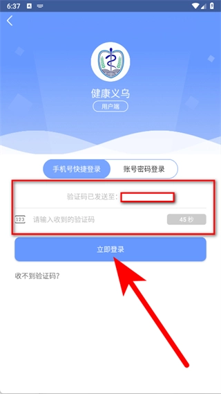 在验证码填写页面,输入获取到的验证码,接着点击立即登录按钮,即可完成注册流程。
