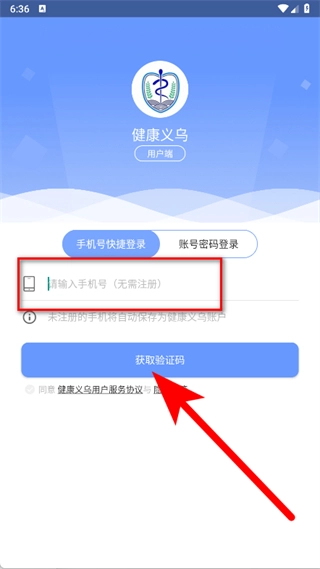 进入登录界面,在手机号输入框填写对应的号码,随后点击“获取验证码”按钮。