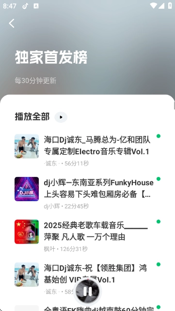 3、榜单页面实时呈现最新音乐排名情况,紧密追随潮流走向,及时把握高热度DJ作品的动态信息。