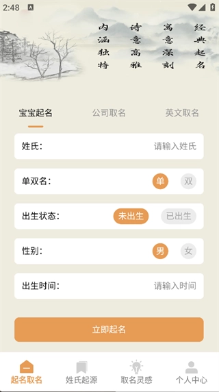采用了十分便捷的取名方式。家长仅需填写孩子的姓氏、出生日期等基础信息,即可迅速生成若干名字供家长挑选。