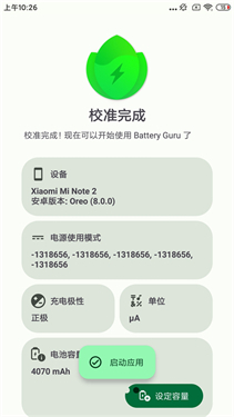2、校准完成后,屏幕会呈现电池的部分基本信息,此时点击启动应用即可。