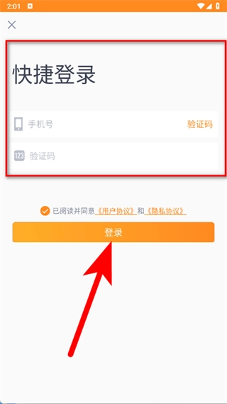 请输入手机号与验证码,勾选同意相关协议后,点击登录按钮,即可完成注册流程。