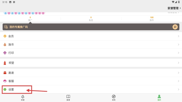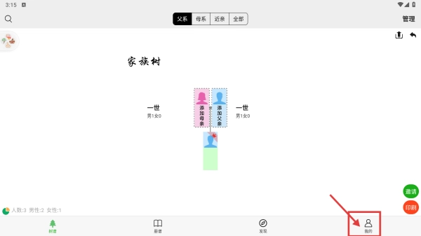 打开家族树应用,点击底部的“我的”选项,进入个人中心页面。
