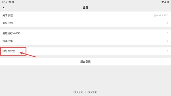进入设置页面后,找到并点击“账号与安全”选项,即可进入账号管理页面。