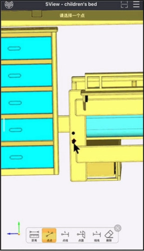 2、将测量模式设定为点到点或点到面,借助模型里的测量助手,通过放大、缩小和移动模型来精准选点与选面,完成选择后在空白区域点击一次即可。