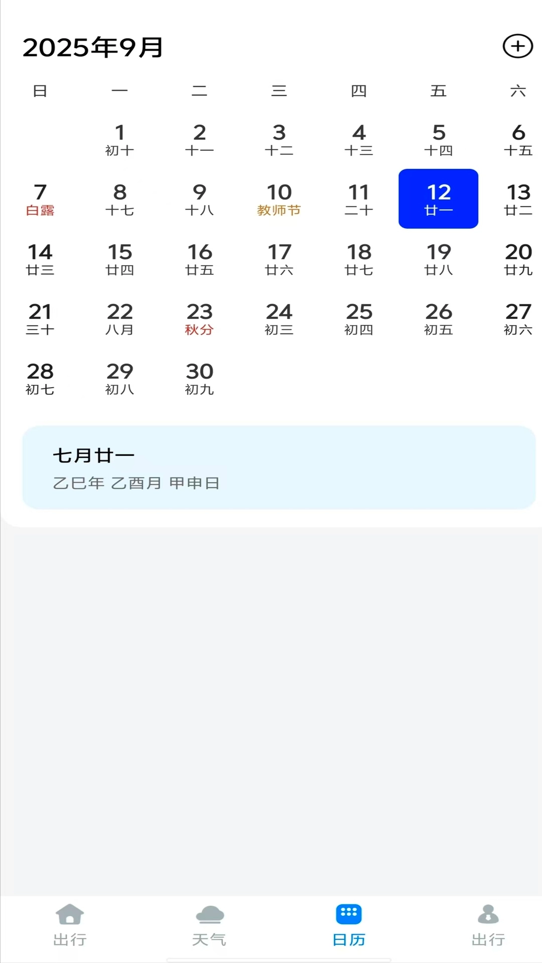3、呈现日期与星期,标注节日相关信息,支持日期快速查询,助力用户把握重要节日节点,便于结合节日情况规划出行或生活安排。