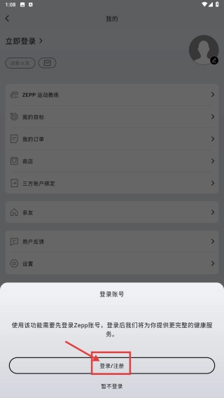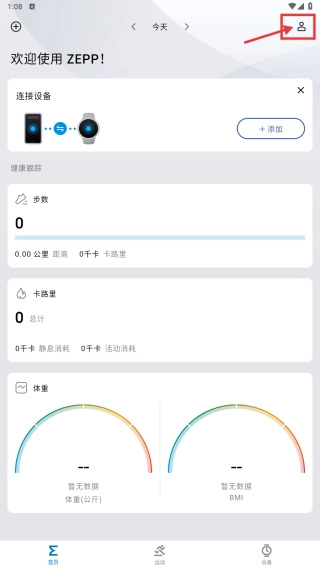 打开ZEPP应用后,点击右上角的个人图标,即可进入“我的”页面。