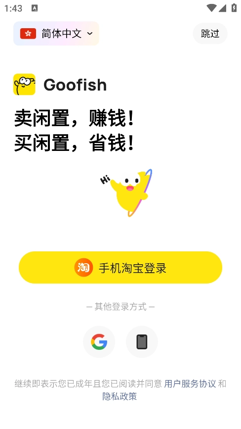 1、可直接使用支付宝、淘宝或闲鱼账号登录,新用户则需完成注册流程