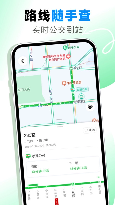 4、依据搜索记录,呈现匹配的公交线路,了解车辆到站时间,以便提前做好乘车准备。