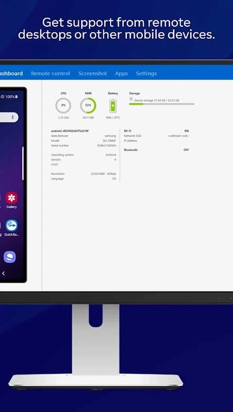 2、技术人员甚至还能够对您的设备(包括Samsung、Sony、Asus、Lenovo、HTC、LG、ZTE、Huawei、Alcatel One Touch / TCL等品牌)开展远程控制操作,远程访问您的设备时,操作体验就如同直接拿在自己手里使用一般。