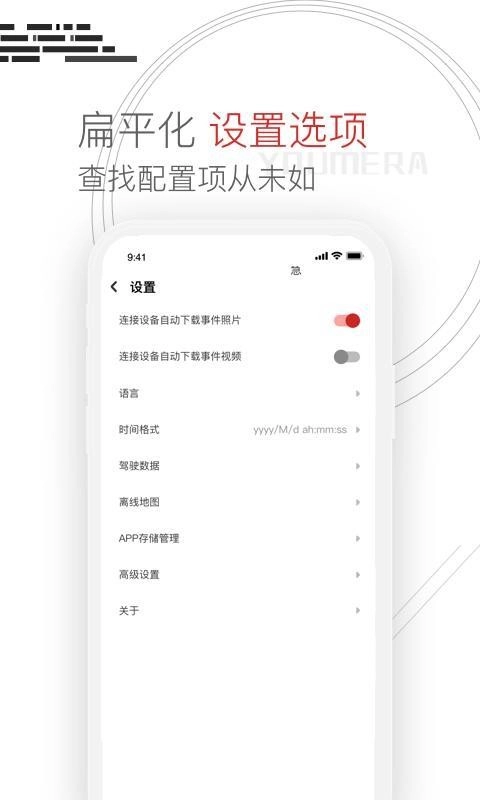 支持连接youmera配套的行车记录仪;
