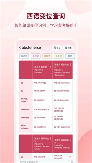 西语助手是一款面向西班牙语学习者的智能语言学习应用,以单词记忆、语法掌握和口语练习为核心构建全方位学习体系,通过与权威教材无缝衔接,可实时提供精准的发音示范和例句解析,为初学者营造高效、系统且轻松的语言学习环境。