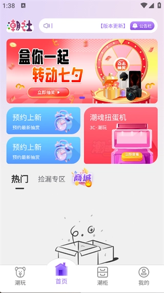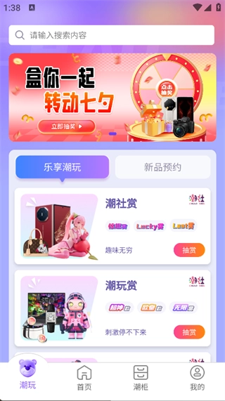 在首页就能看到预约上新、潮魂扭蛋机、立即抽奖这些功能。