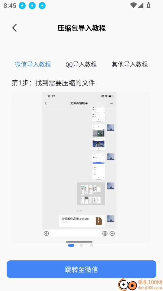 4、接下来就能看到微信导入的教程,点击“跳转至微信”按钮即可清晰查看具体内容。
