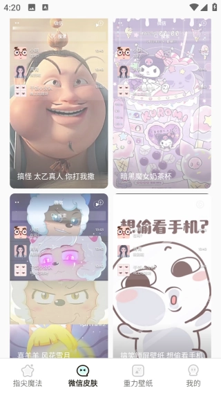 打开【微信皮肤】界面,浏览选择心仪的动态壁纸。