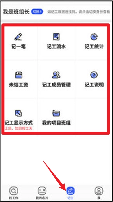 5、进入记工模块,可开展记一笔、查看记工流水、管理记工成员等操作,便于工地考勤与工资的记录及管理。