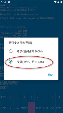 3.接着会提示安装图形界面,点击【安装】按钮即可,此步骤需要1.5G内存空间。