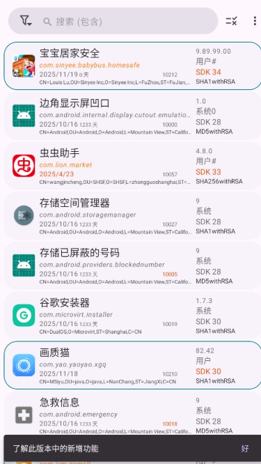 安全防护方面,可扫描APK签名,以此验证应用的安全性,同时支持自定义签名设置。