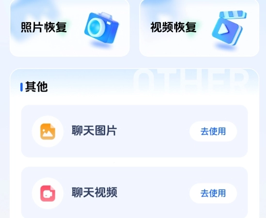 首页推送功能十分丰富,支持照片和视频的恢复操作,同时也能开启聊天文件恢复等功能。